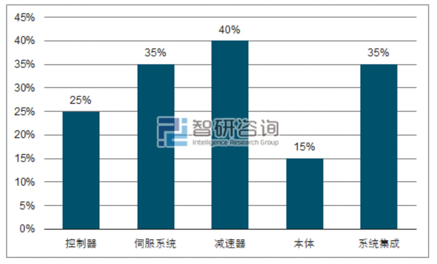 在工業(yè)機器人產業(yè)鏈中,技術上的核心和難點就集中在了上游生產商,即核心零部件的生產,成本和利潤也集中在了這一領域,核心零部件的成本占到了整個機器人本體的70%以上,所以誰掌握了核心零部件的生產技術和能力,就占領了機器人產業(yè)的*高點,擁有很高的定價權。